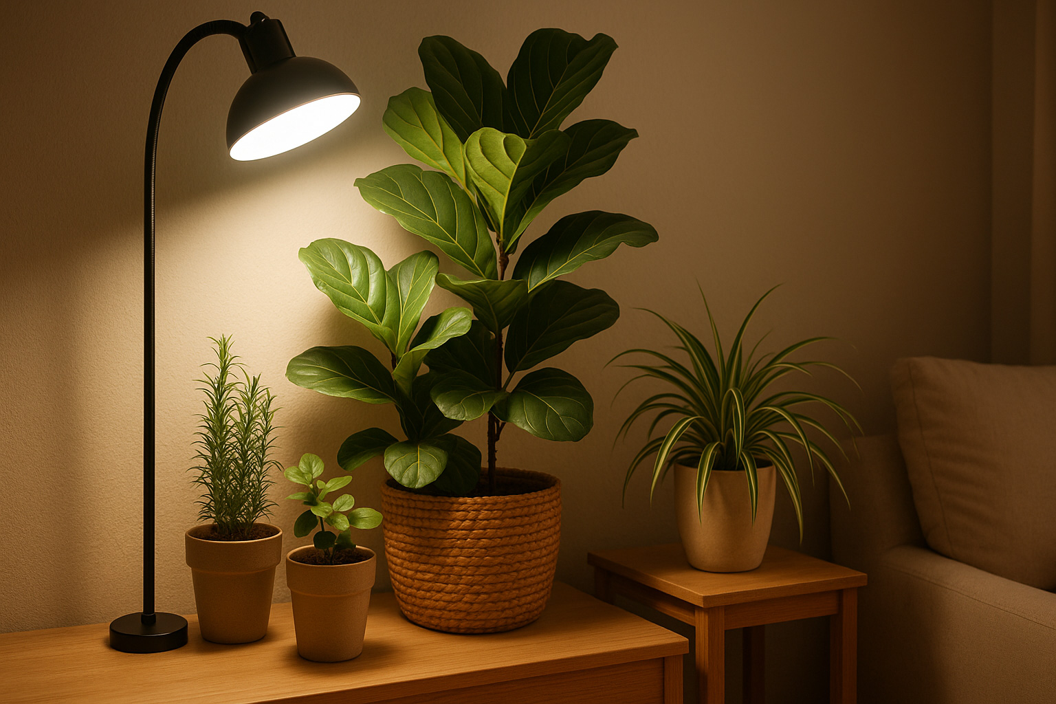 次に、植物育成ライトを設置してみよう。設置場所は、自分がよく過ごすリビングや寝室がおすすめ。植物が見える場所にライトを置くことで、視覚的にも癒されること間違いなし。