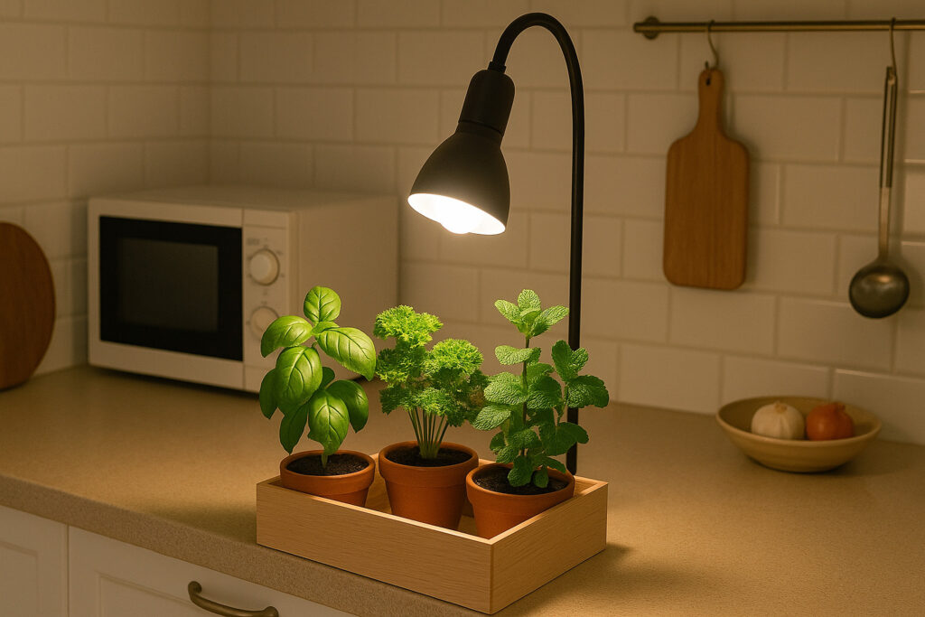夏から秋にかけての季節の変化は、植物にとっても人にとっても大切なタイミングです。日照不足を補う「口金E26電球スタンド」と「植物育成用白色LEDライト」を上手に活用すれば、小さなスペースでも充実したキッチンミニガーデンを楽しめます。