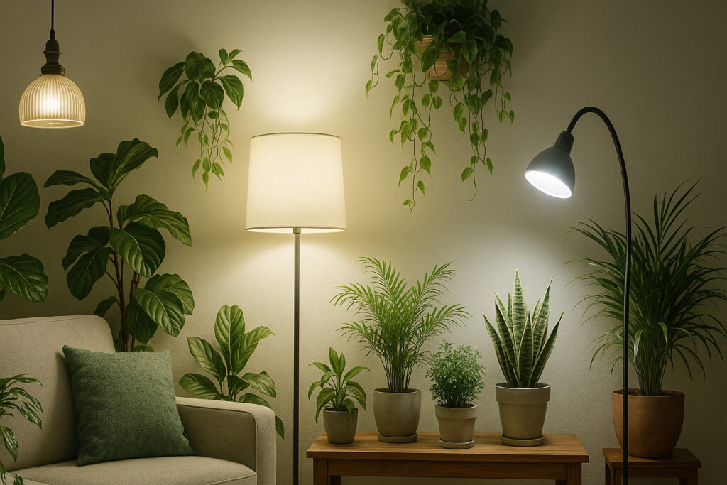 次に、照明の配置について。植物に直接光を当てるのも良いですが、間接照明を使うと、柔らかい光が部屋全体に広がり、リラックスできる空間になります。フロアランプやスタンドライトを使って、壁や天井に光を反射させるのもおすすめです。これでお部屋全体が優しい光に包まれます。