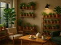 広いリビングなどでは、特定の植物コレクションを白色LEDライトで照らし、そのエリアを際立たせる「光のゾーン」を作るのが効果的です。高演色の光によって引き立てられた植物たちは、空間のフォーカルポイントとなり、リラックスできる洗練された雰囲気を生み出します。夜間は、この光が間接照明のような役割を果たし、落ち着いた癒やしの空間を演出します。