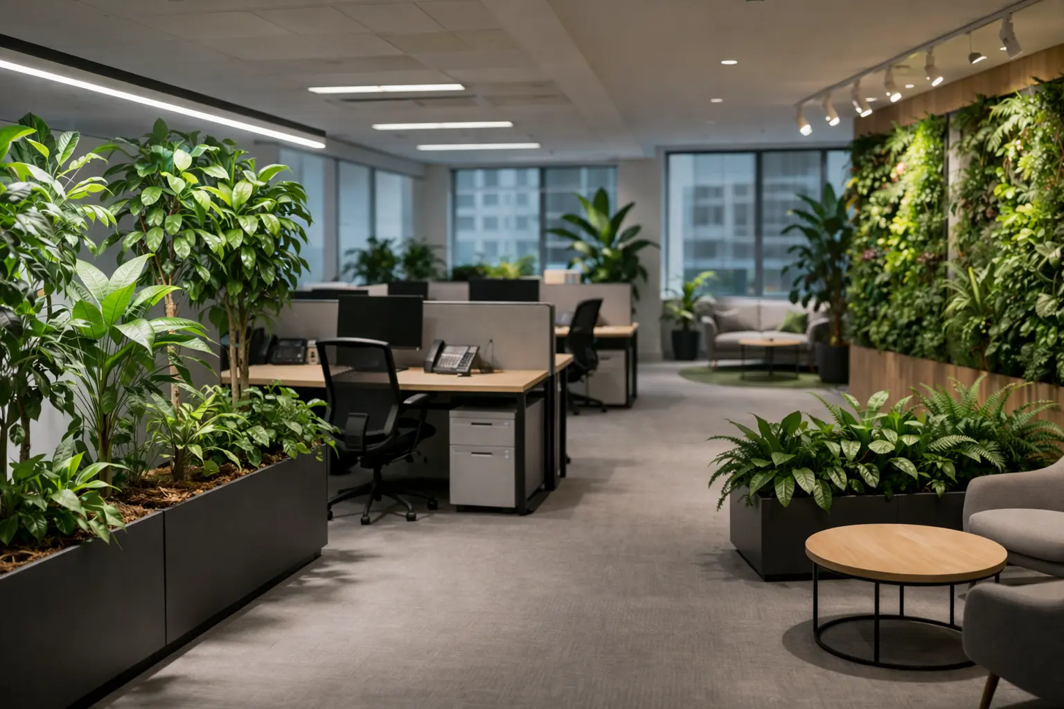また、植物には蒸散作用による湿度の調節や、空気中の物質を吸収する働きがあり、乾燥しがちなオフィス環境の改善に寄与します。こうした環境整備は、従業員の集中力の維持や、コミュニケーションの活性化につながる重要な要素となります。