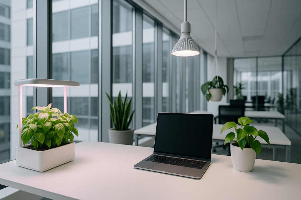 オフィスを緑で彩る!育てるLEDライトとPARタイプLEDで始める簡単ガーデニング