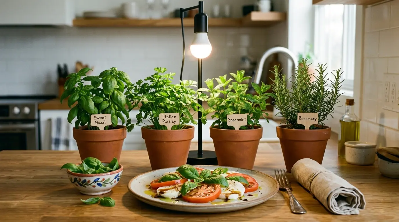 キッチンのちょっとしたスペースでハーブを育てると、お料理の際にサッと摘んで新鮮な香りを楽しむことができます。日当たりが心配なキッチンでも、口金E26電球スタンドと植物育成用白色LEDライトを活用すれば、天候や季節に左右されず、元気なハーブを室内栽培することが可能です。ここでは、初心者の方でも育てやすく、毎日のお料理に大活躍するおすすめのハーブを厳選してご紹介いたします。