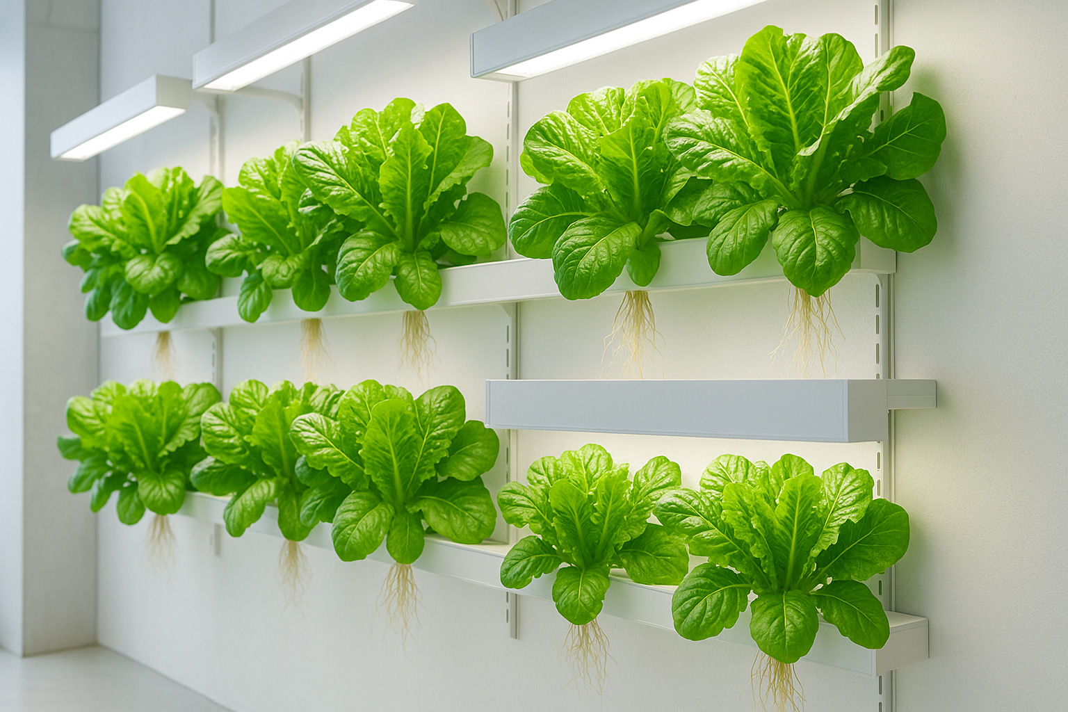 特に注目すべきなのは、都市部のビルの内壁や天井近くなど、これまで活用されてこなかった空間を有効利用できる点です。植物は棚や枠に吊るされるように設置され、根は空中に垂れ下がり、霧状の水と栄養が定期的に供給されます。土や広大な農地がなくても作物が育てられるため、都市型農業の可能性を広げています。