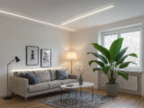 おしゃれな空間演出という点でも、LEDスポットライトは優れています。植物に光を当てるだけで、まるでショップディスプレイのような洗練された雰囲気に。夜間は間接照明としても機能するため、リビングの雰囲気をワンランクアップさせることができます。