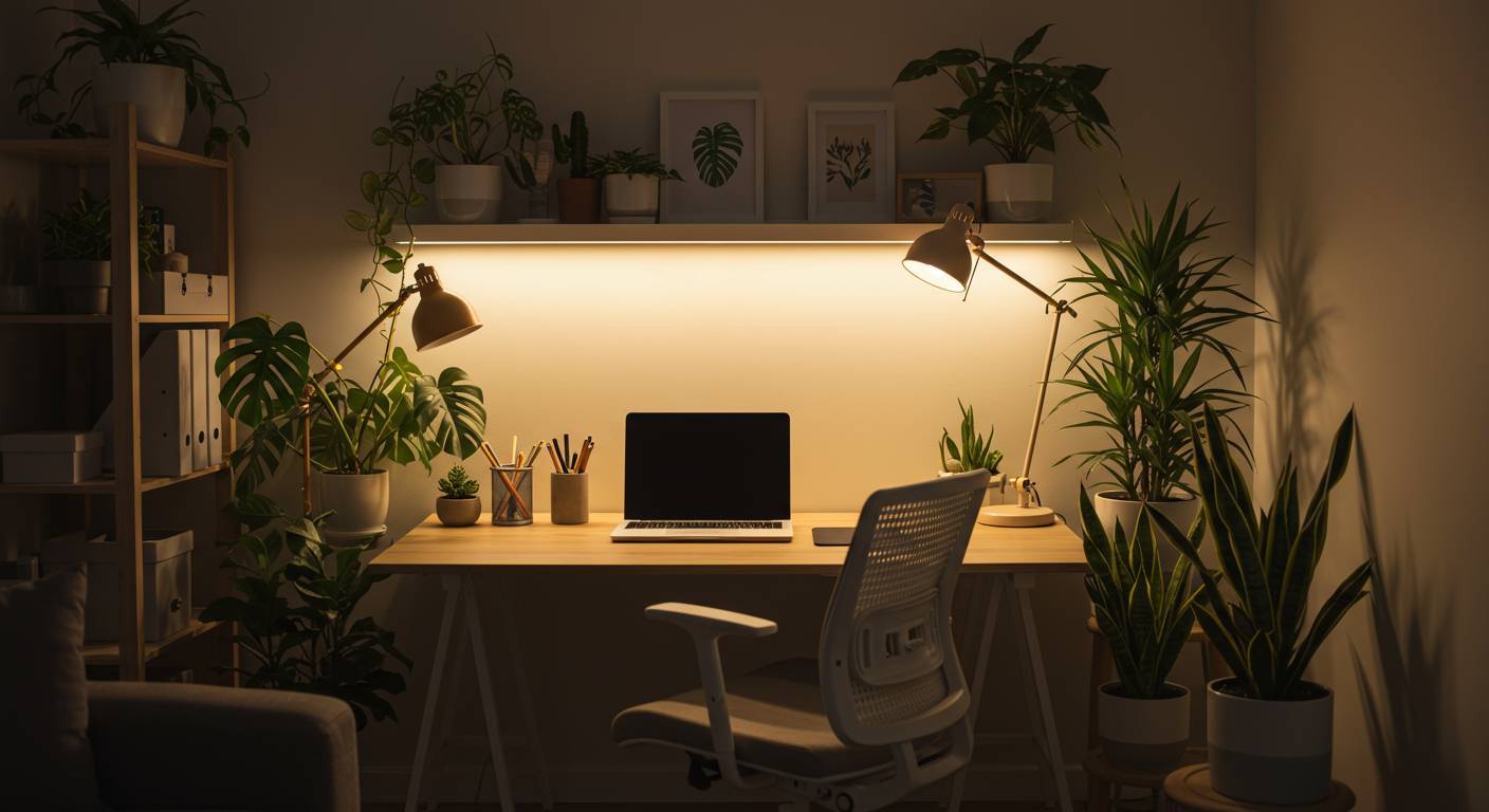 1. 在宅勤務の疲れを解消!高演色LEDと観葉植物で作る究極のリモートワーク環境