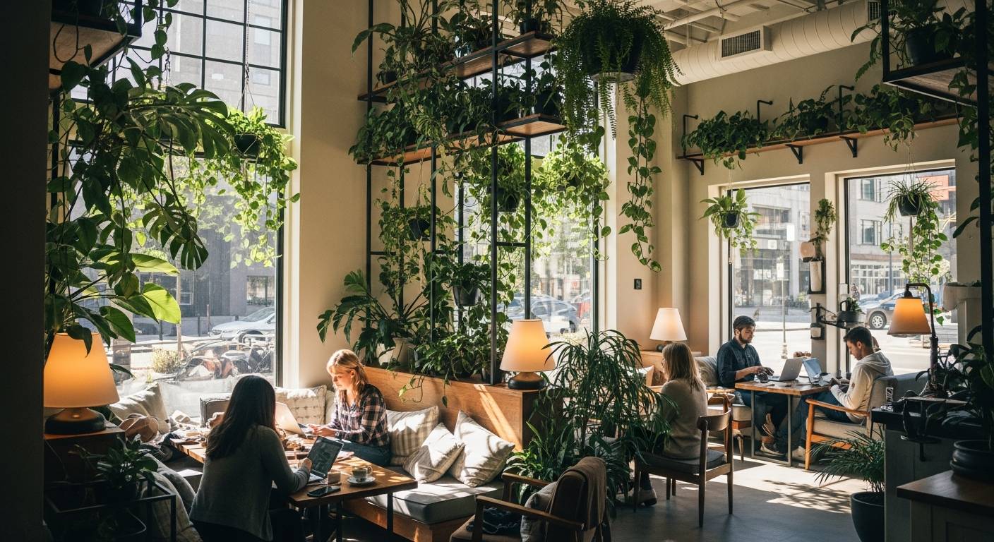 居心地の良いカフェに一歩足を踏み入れた瞬間、なぜか長居したくなる不思議な魅力を感じたことはありませんか?実はその秘密、観葉植物と照明の絶妙な配置にあったのです。人気カフェが実践する空間演出テクニックを、現役カフェオーナーの視点からご紹介します。