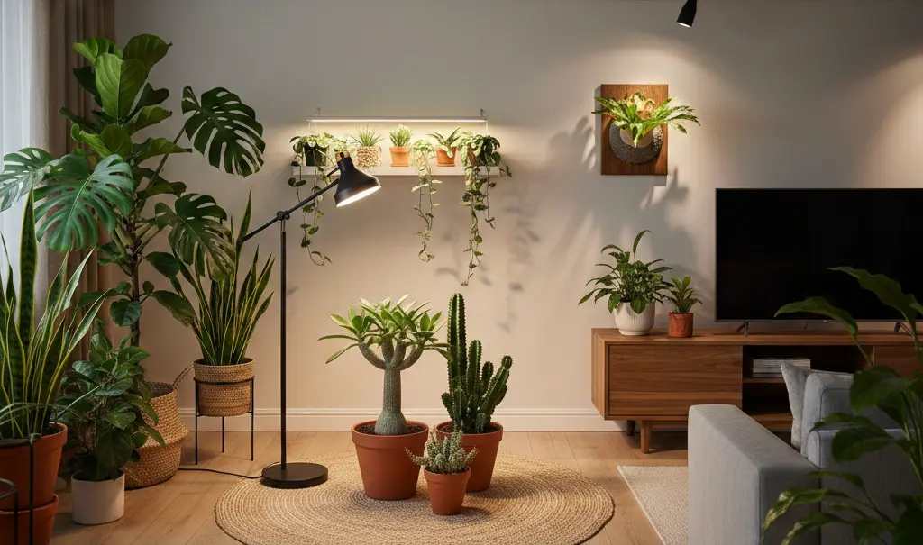 白色LEDライトは、部屋の雰囲気を壊さずに植物に必要な光を供給できるため、現代の室内栽培に適しています。インテリア性を保ちながら植物を健やかに育てるためのポイントは以下の通りです。