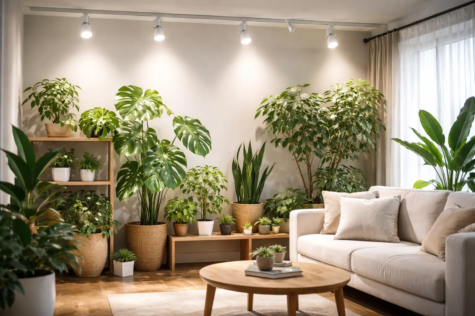 2. 日当たりの悪いお部屋も緑あふれるオアシスに。光合成に有効な白色のヒカリで植物と人の両方を癒やす照明活用術