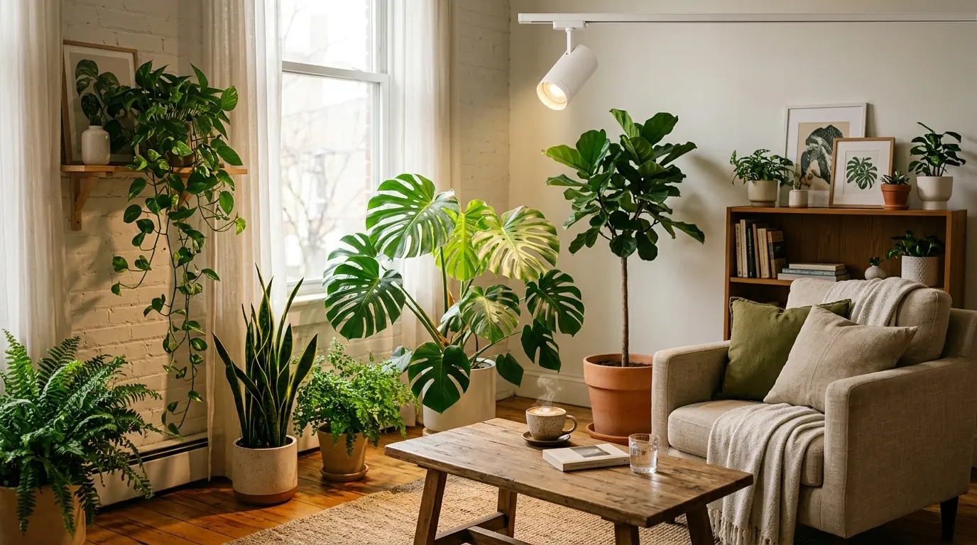 ご自宅のお部屋を、おしゃれなカフェのような癒しの空間にしたいと思ったことはありませんか。お気に入りの飲み物を片手に、緑豊かな観葉植物に囲まれながら過ごす時間は、日々の疲れを優しくリセットしてくれる極上のリラックスタイムです。しかし、「室内の日当たりが悪くて植物がすぐに枯れてしまう」「日光不足のせいで葉の色が美しく育たない」といったお悩みをお持ちの方も少なくありません。