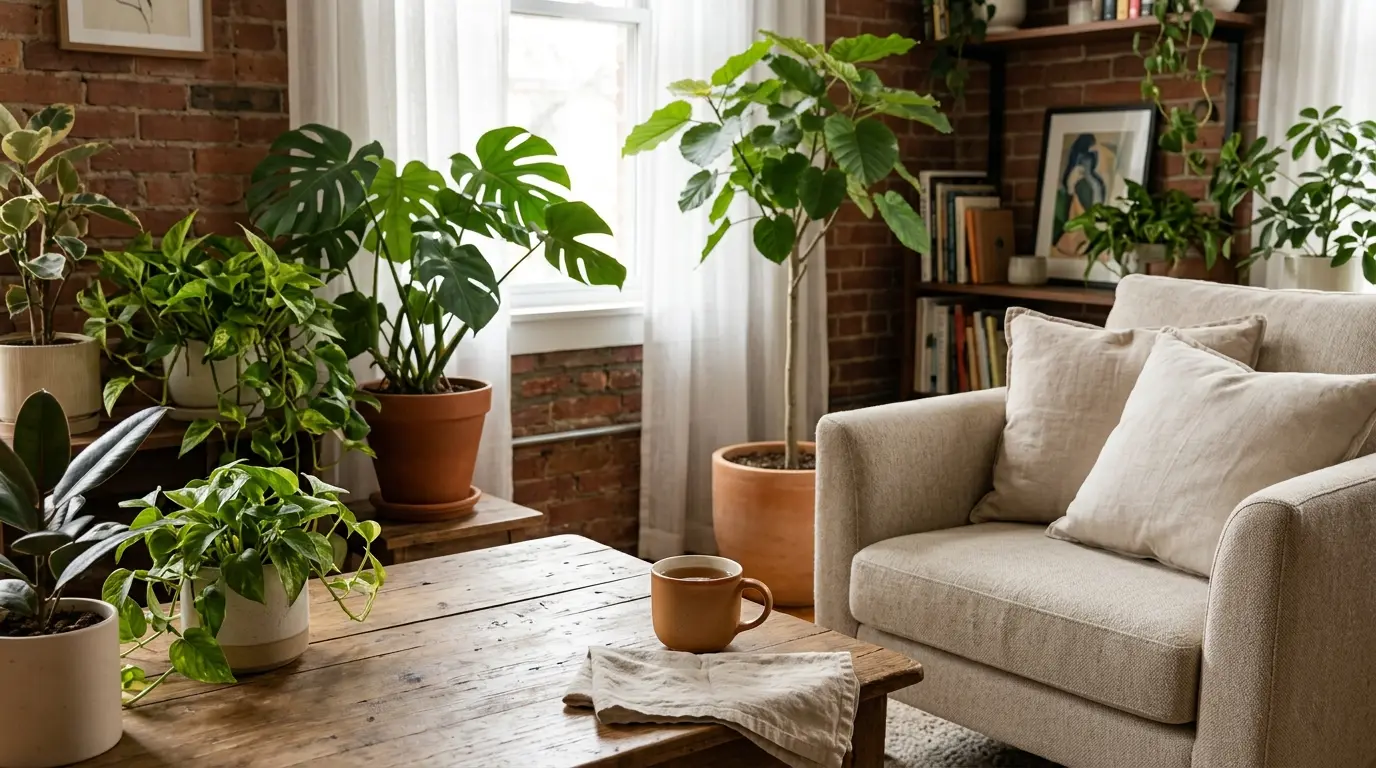 ご自宅のリビングやダイニングを、お気に入りのカフェのようにくつろげる空間に変えたいと感じたことはありませんか。おしゃれなカフェに足を踏み入れた瞬間に感じるあの心地よさは、洗練された家具の配置だけでなく、空間に美しく調和した緑が大きな役割を果たしています。室内に観葉植物を取り入れることで、無機質になりがちな空間に自然の温もりが加わり、日常の疲れを優しく解きほぐす極上のリラックス空間を作り出すことができます。