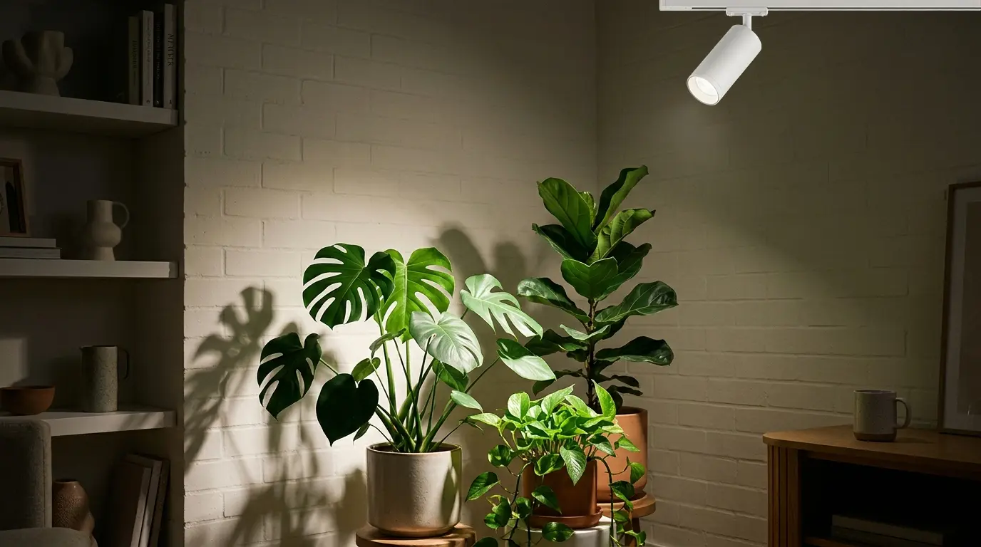 かつての植物育成ライトといえば赤や青の派手な光を放つものが主流でしたが、最新の白色LEDスポットライトは、太陽の光に極めて近い自然な温かみのある白色光を照射します。そのため、お部屋のインテリア性を一切損なうことなく、カフェのような落ち着いた雰囲気を維持したまま、植物の光合成をしっかりとサポートすることができます。スポットライトの光を浴びて青々と輝く植物の姿は、お部屋の美しいアクセントにもなります。