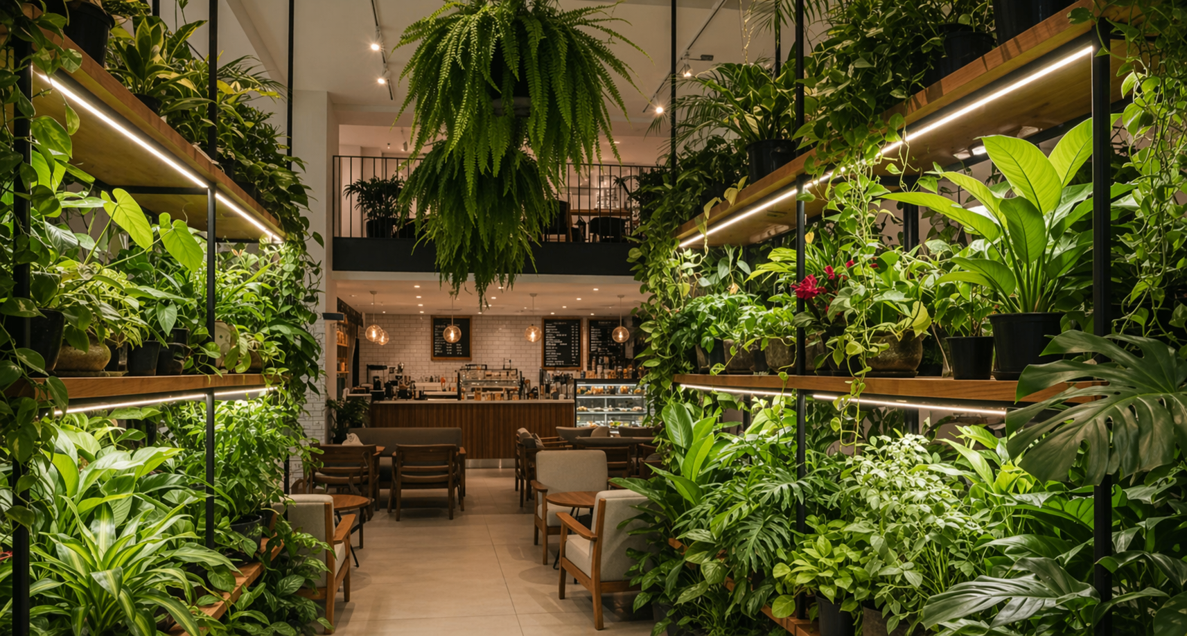 2. 園芸店併設カフェが実践しております、観葉植物と光が織りなす極上の癒し空間の作り方