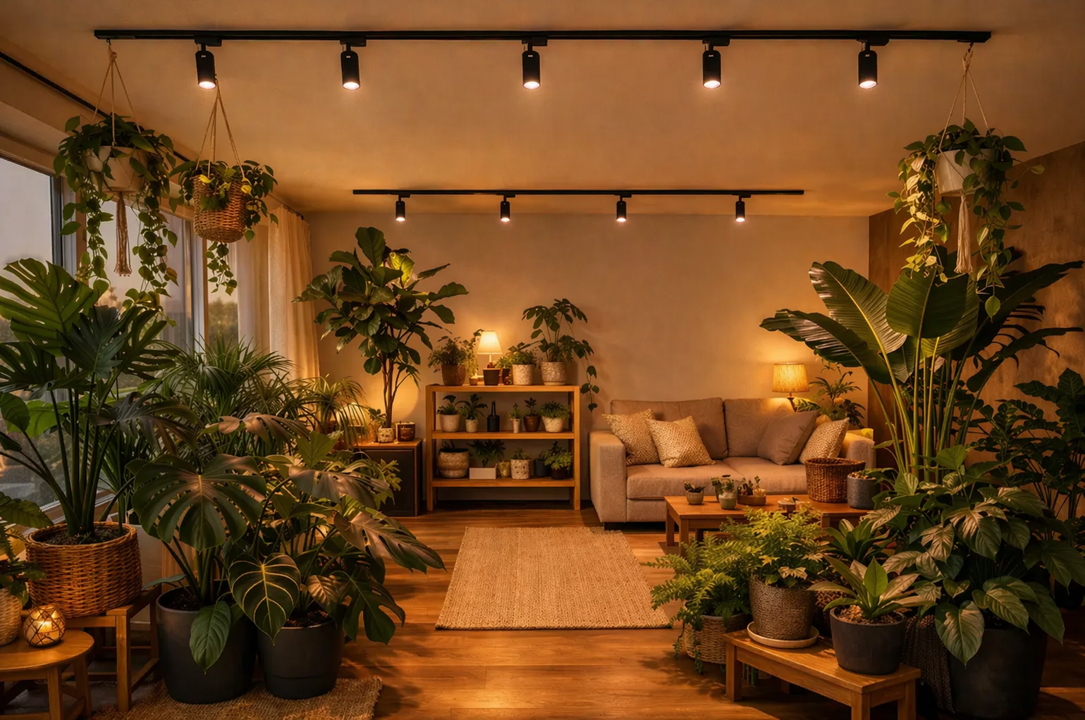 美しいデザインのダクトレールやスタンドライトと組み合わせてお気に入りの植物をライトアップすれば、葉の影が壁に落ちるコントラストが生まれ、空間全体のインテリア性が格段に向上します。正しい照明選びと設置のコツを取り入れて、緑に囲まれた心地よい暮らしをぜひスタートさせてみてください。