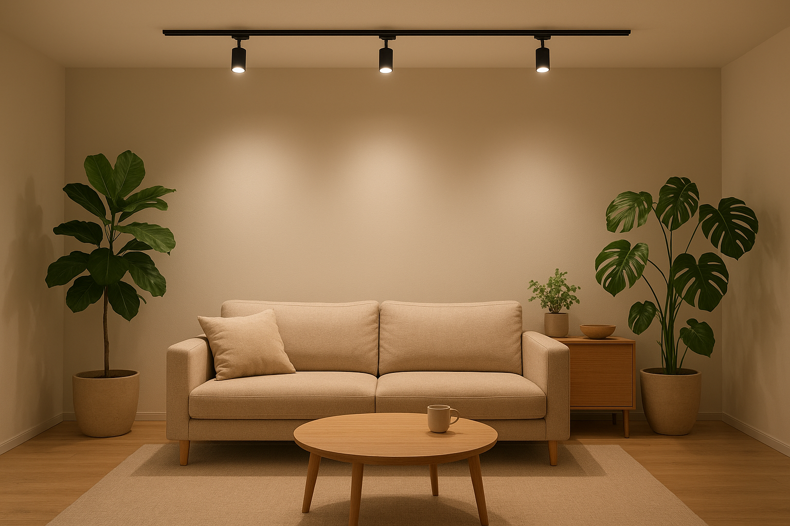 2. プロが教える!狭い部屋でも映える、ダクトレール式LEDと植物の絶妙コーディネート術