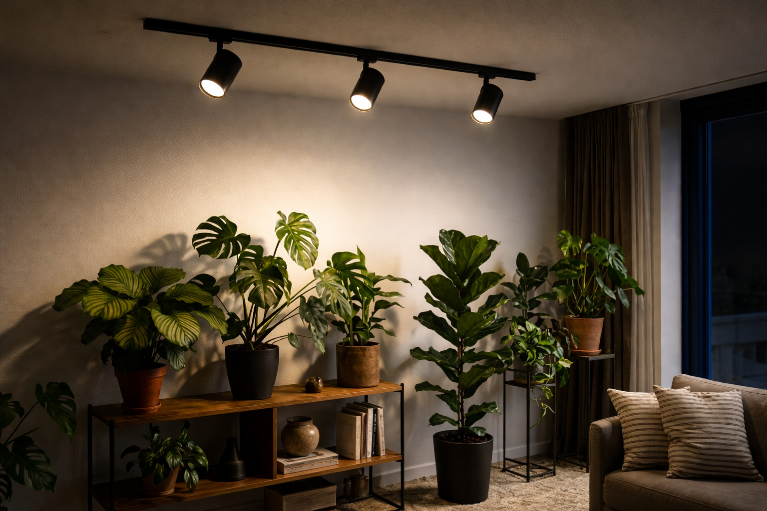 適切な照射距離と照射時間を守ることで、ダクトレールに取り付けた白色LEDライトはただのおしゃれなインテリア照明から、植物のための「最高の人工太陽」へと変わります。お持ちの植物の特性に合わせたセッティングを見つけ出し、新芽が次々と展開する理想的な成長の過程を楽しんでください。